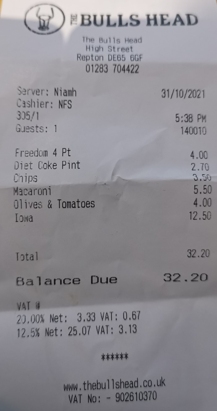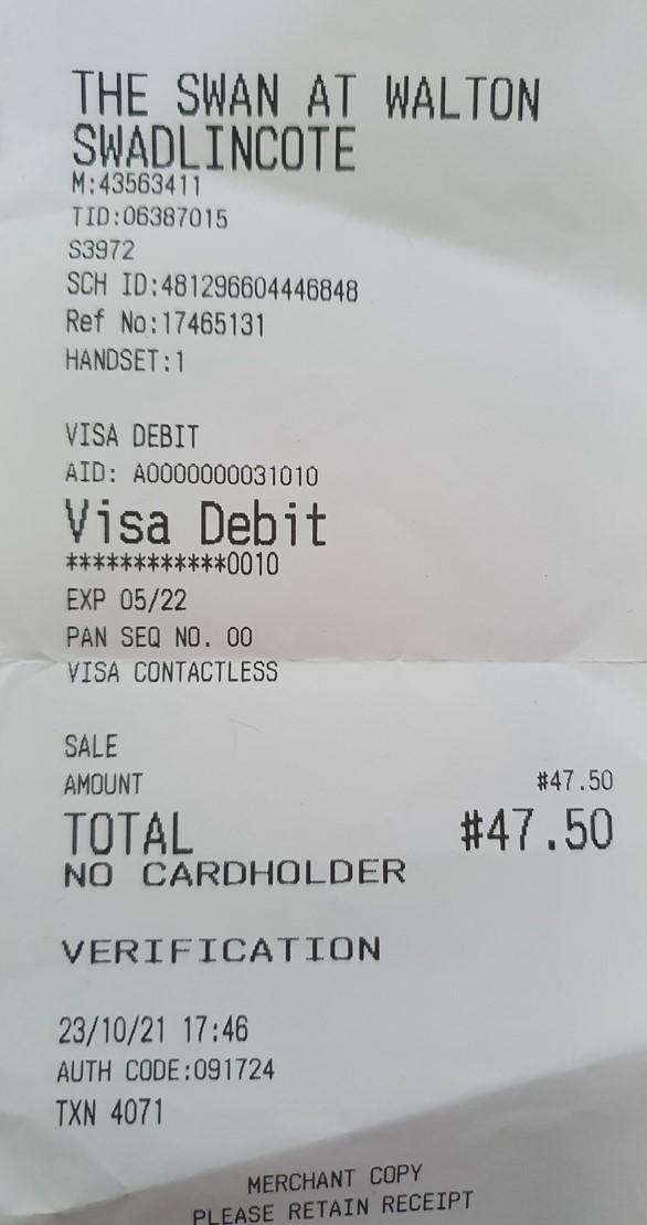 When you pay for your food & drink - ask for a copy of the ITEMISED TILL RECEIPT