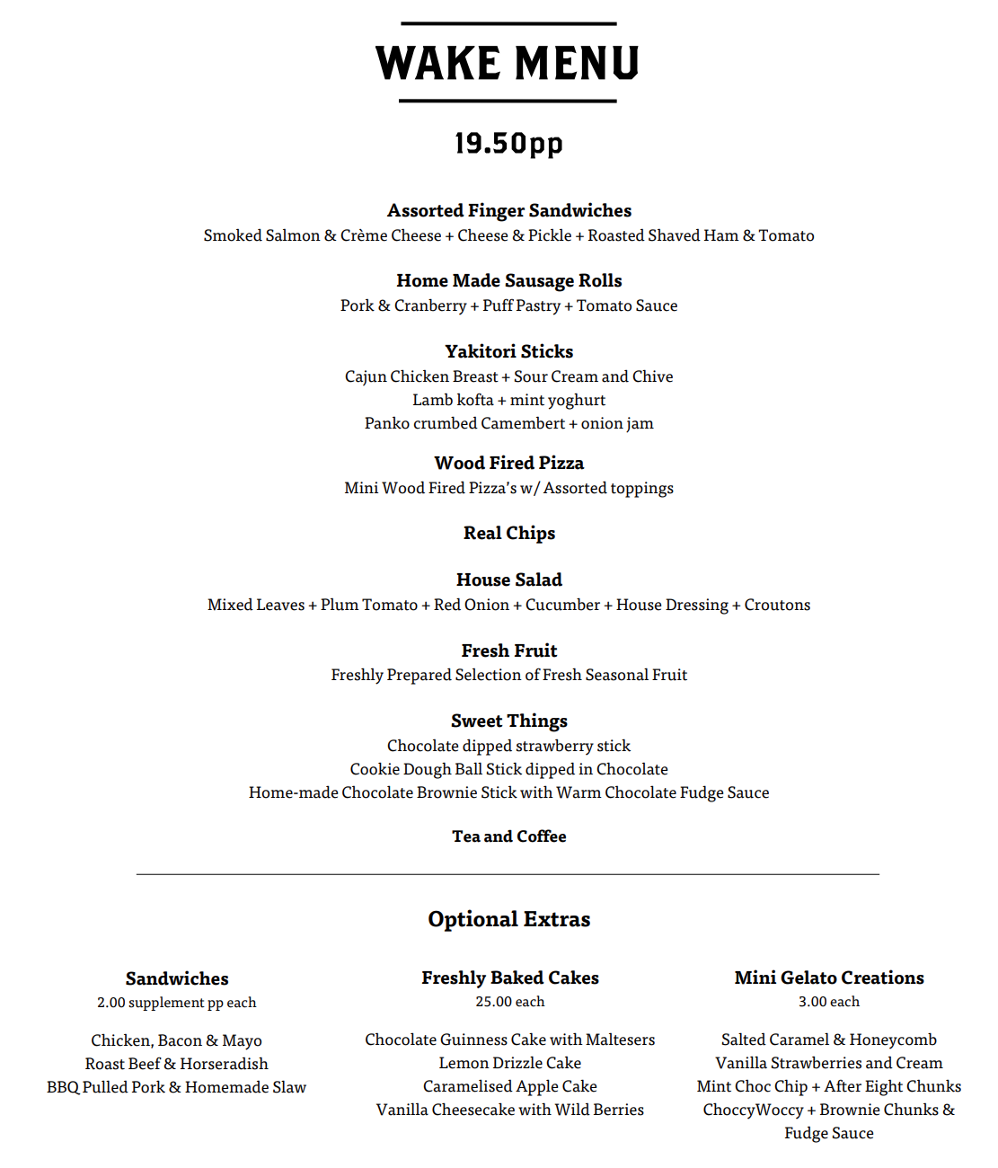 We understand this is a very difficult time for all involved... We provide a personal & discreet offering in one of our beautiful restaurant surroundings, with our warm and friendly team on hand throughout the day, and a bespoke buffet menu that caters to all.