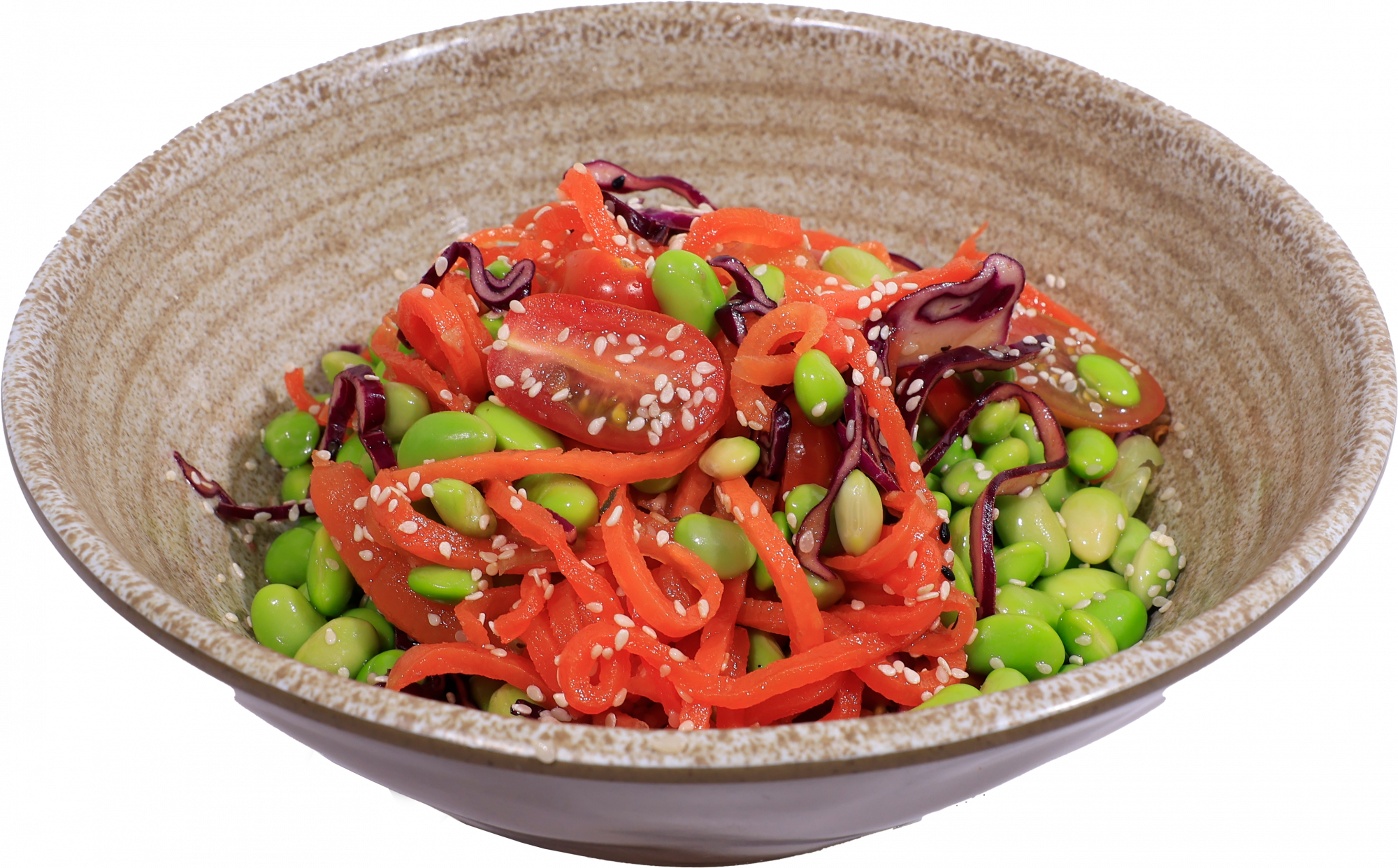 Edamame + cherry tomatoes + pickled carrot + red cabbage + sesame seeds + lemon juice